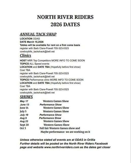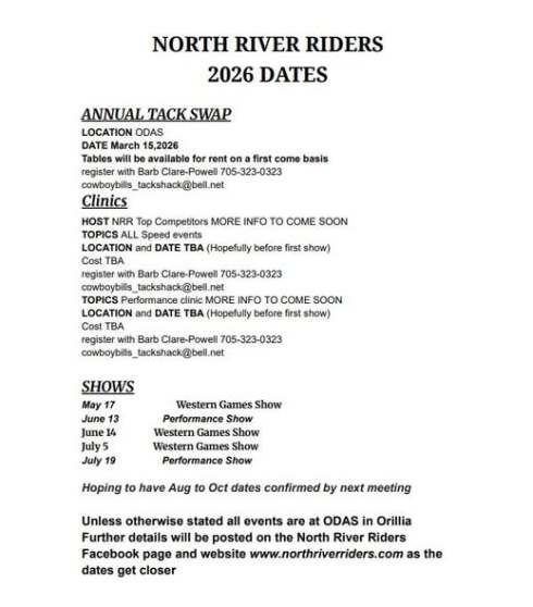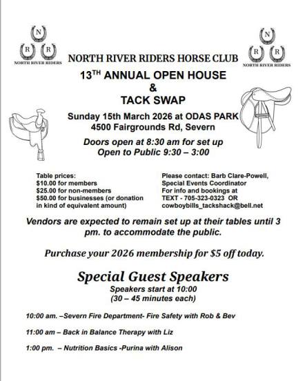 On January 25, North River Riders Treasurer Janet Fazackerley presented ODAS president Erin Wright with a check for $700.00. at the fair board's Annual General Meeting. The club is very fortunate to have access to such a great place to host our shows and events. We look forward to many more years of this mutually beneficial alliance.